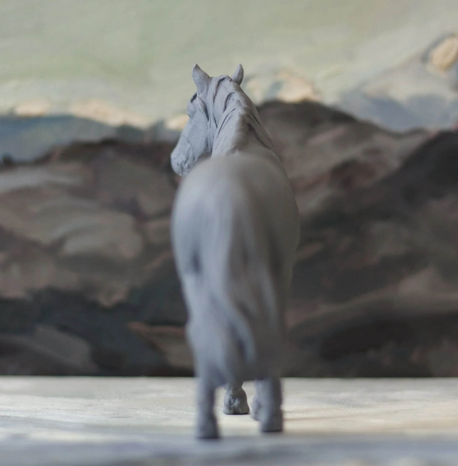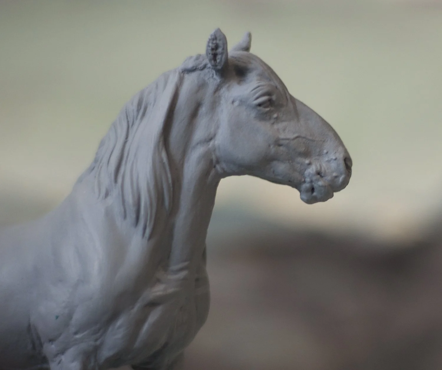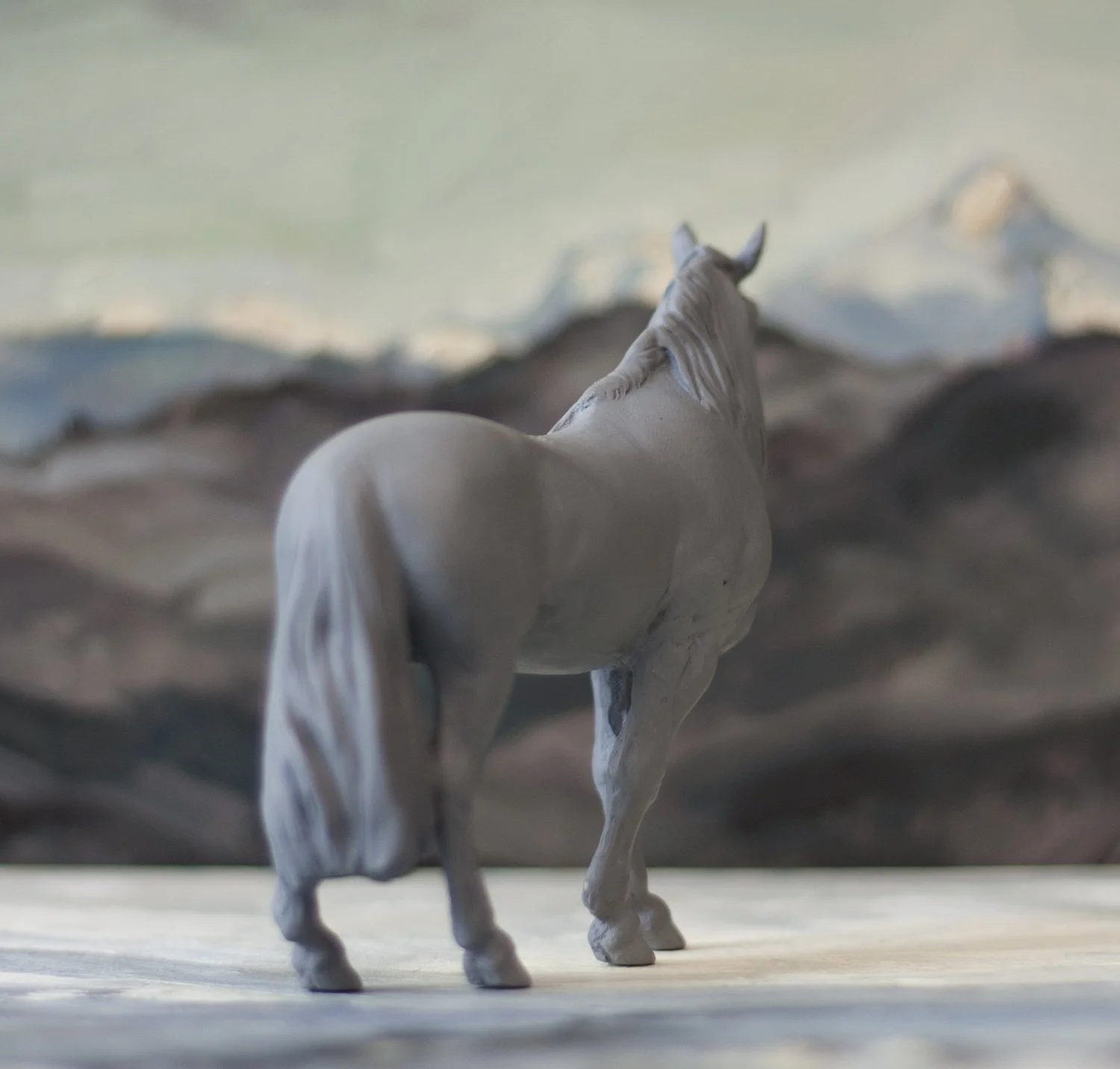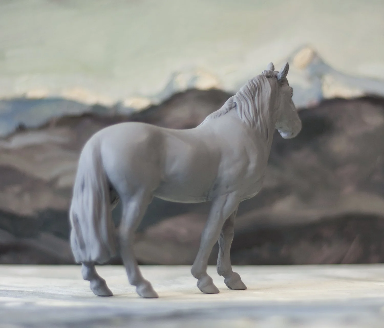 Boldgar is a curio scale study of the Kladruber breed. Most notably known for their distinct roman nose faces, Kladrubers also feature upright shoulders, long backs, and short croups.