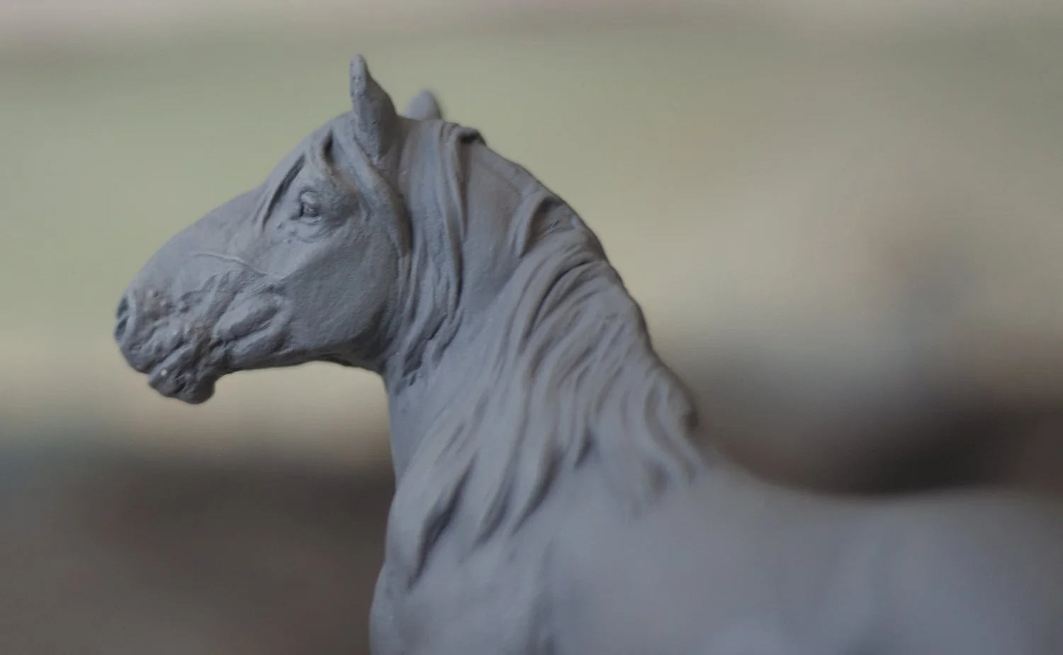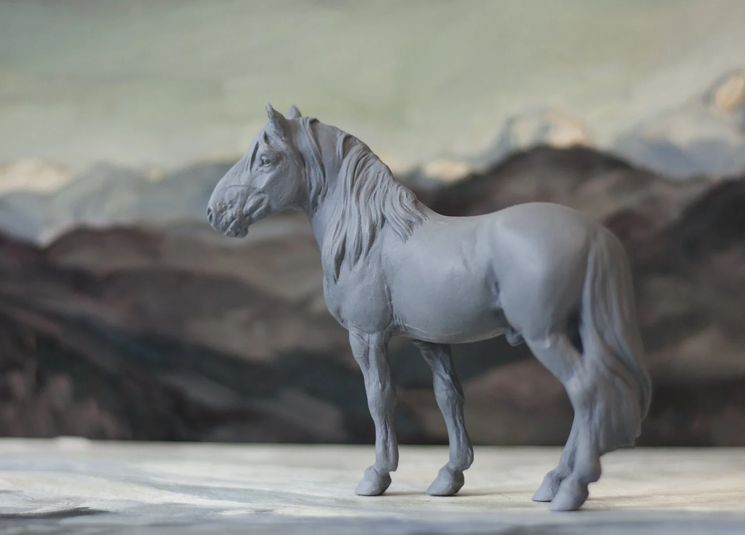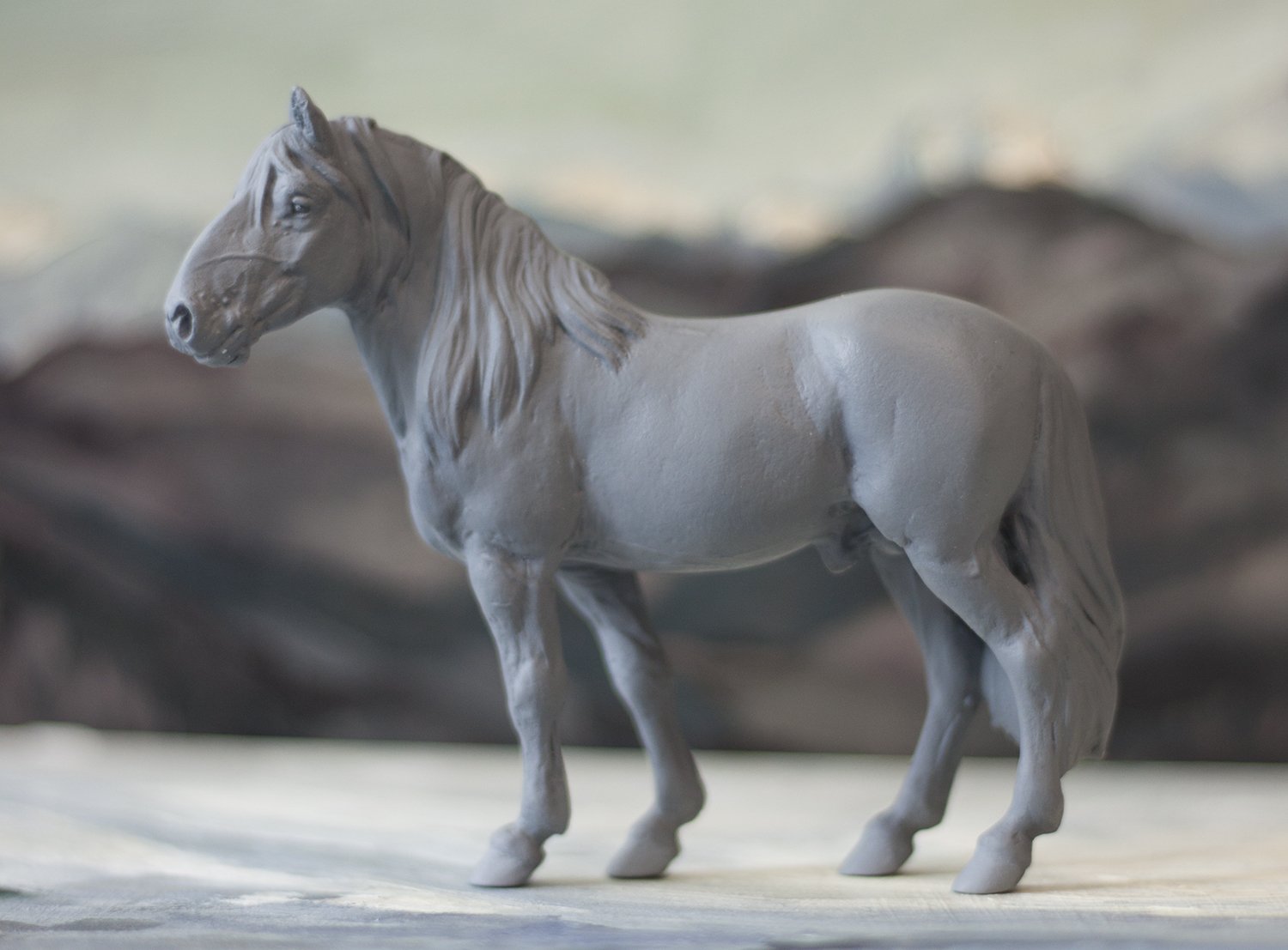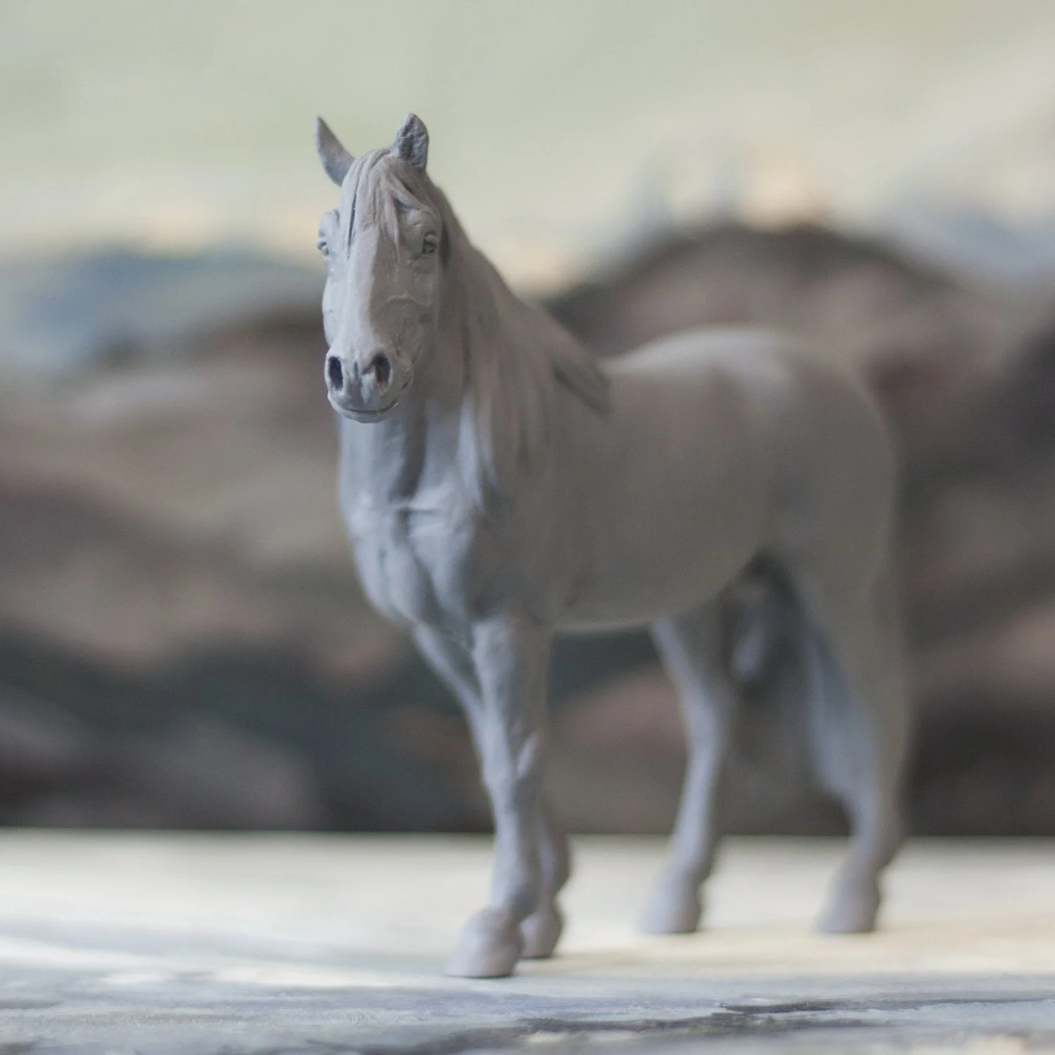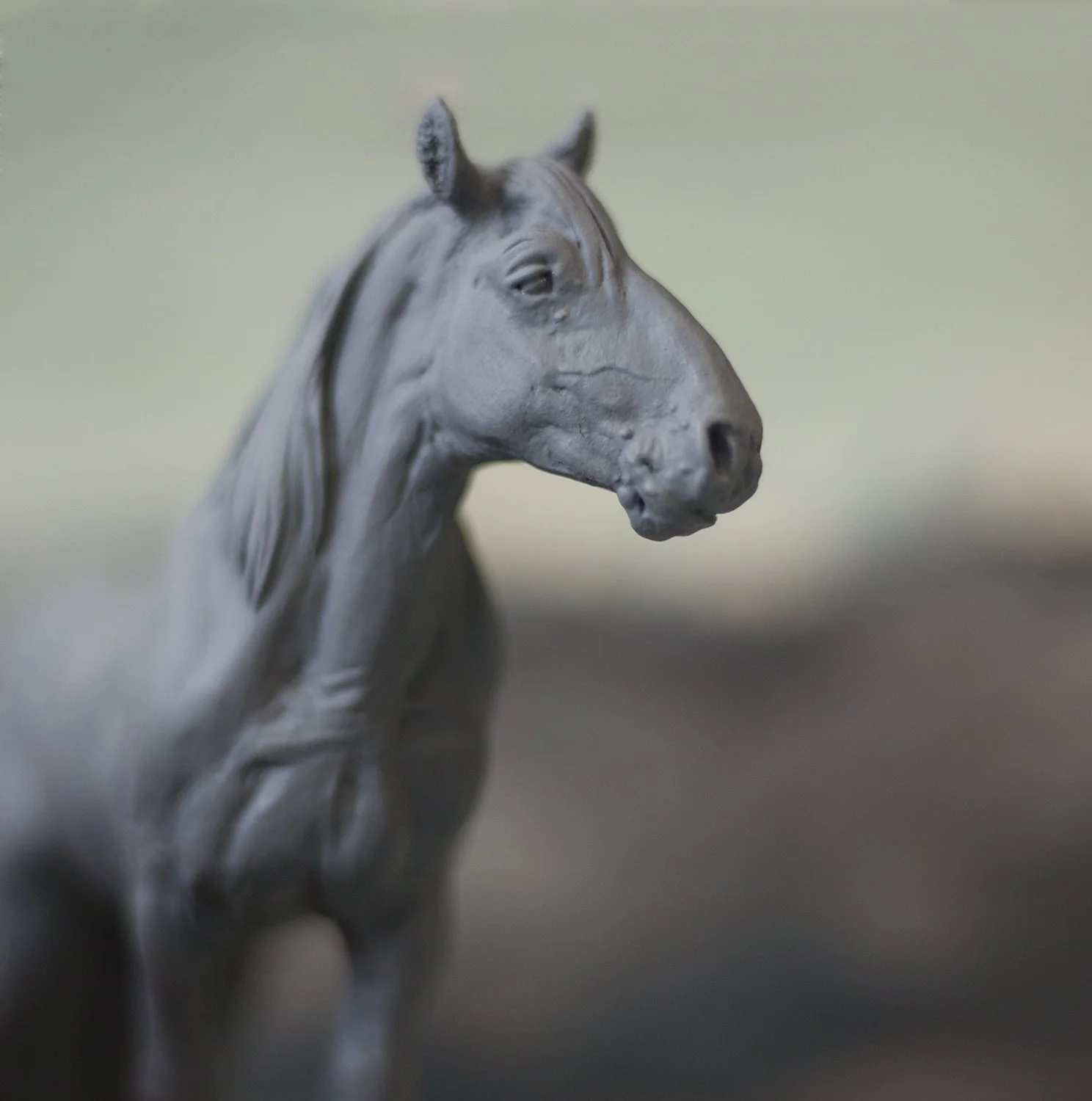 Boldgar is a curio scale study of the Kladruber breed. Most notably known for their distinct roman nose faces, Kladrubers also feature upright shoulders, long backs, and short croups.