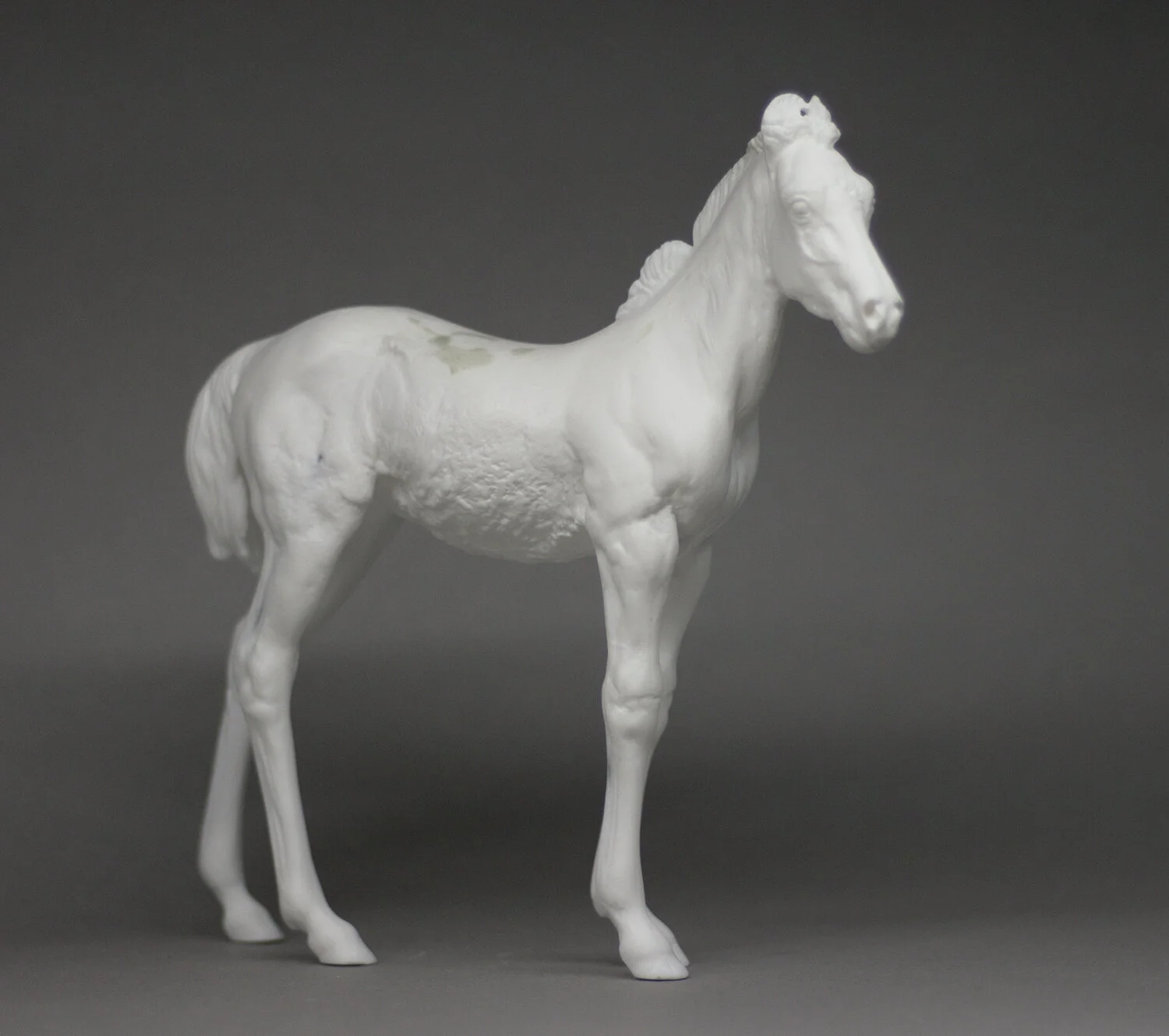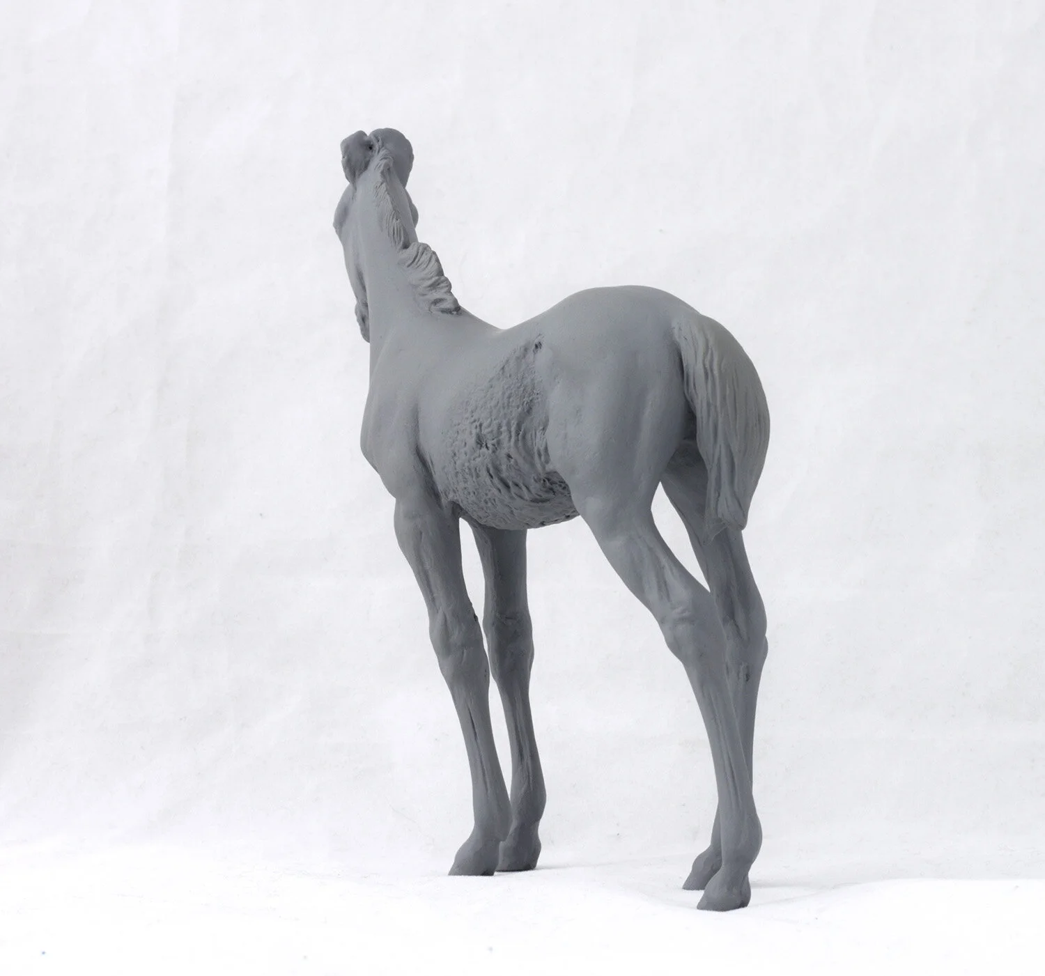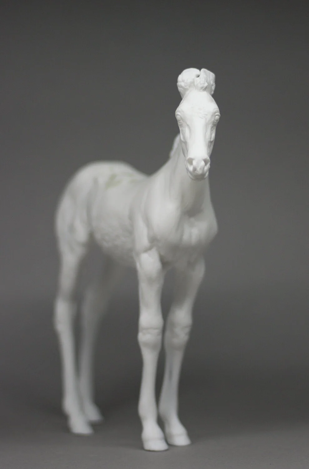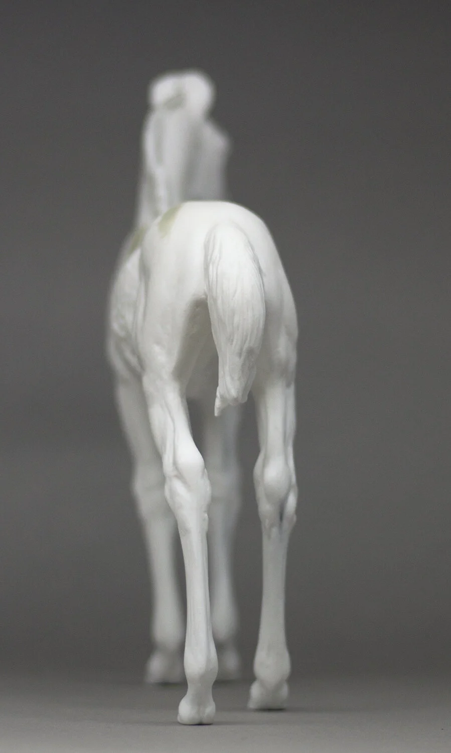 Nessa is a traditional scale Marwari filly, leggy and ready to bounce away. She has her breeds’ characteristic curly ears and baby fuzz too (ears will be dremelled clean when casts arrive, I’ve kept things closed there to hopefully simplify the mold making process.) She might be gangly now, but she’ll surely grow into a stunner when she’s older!