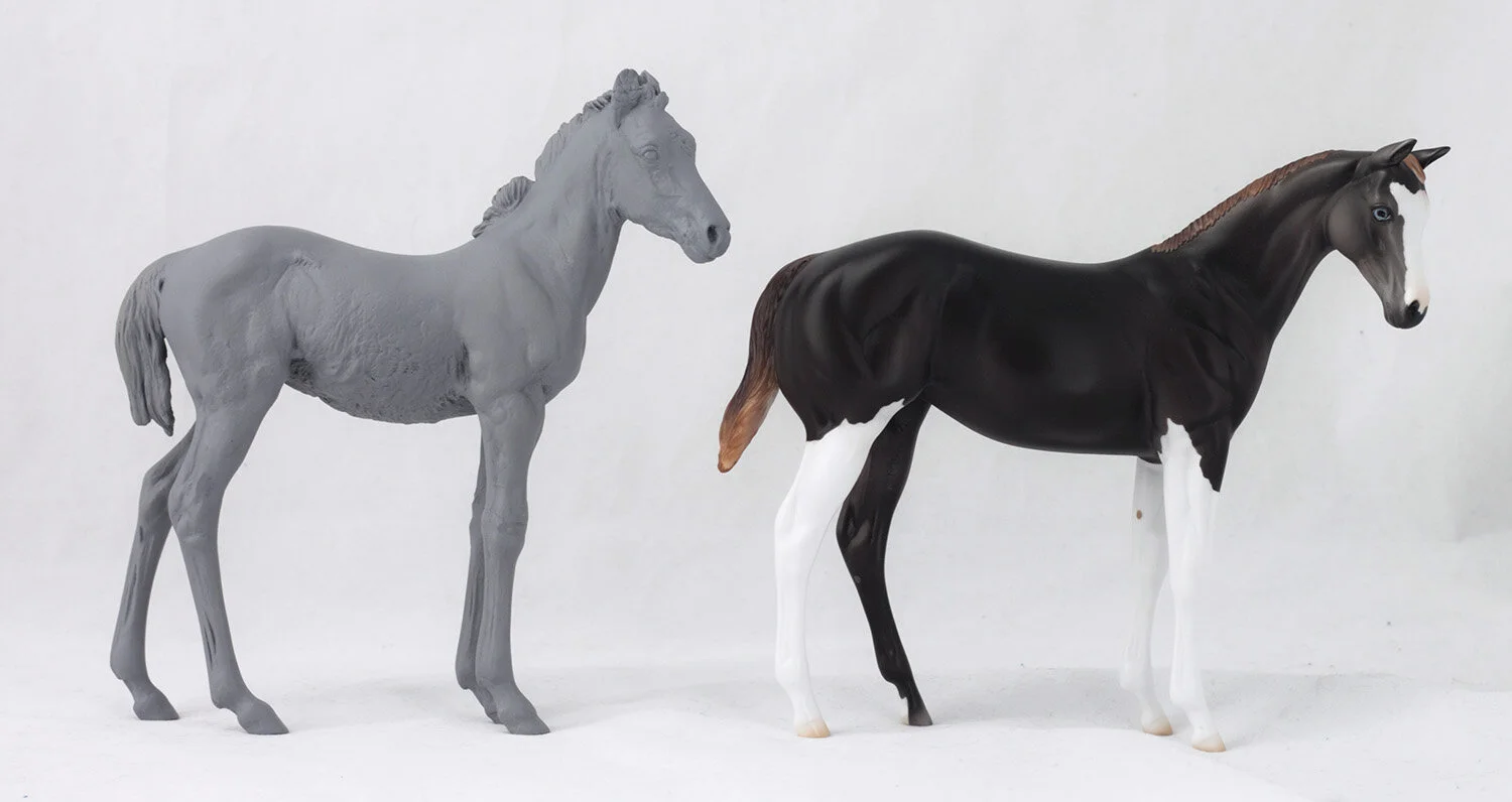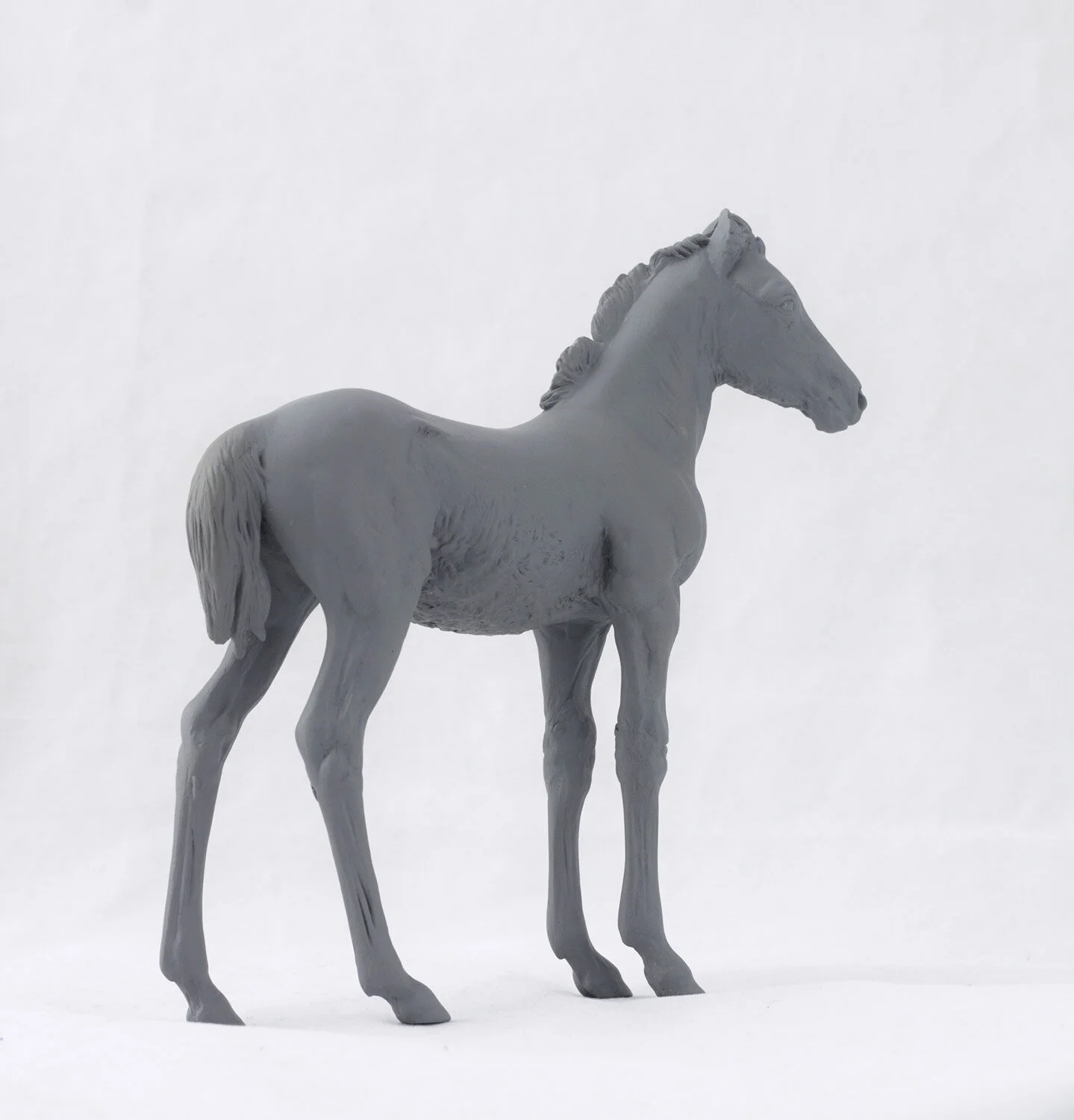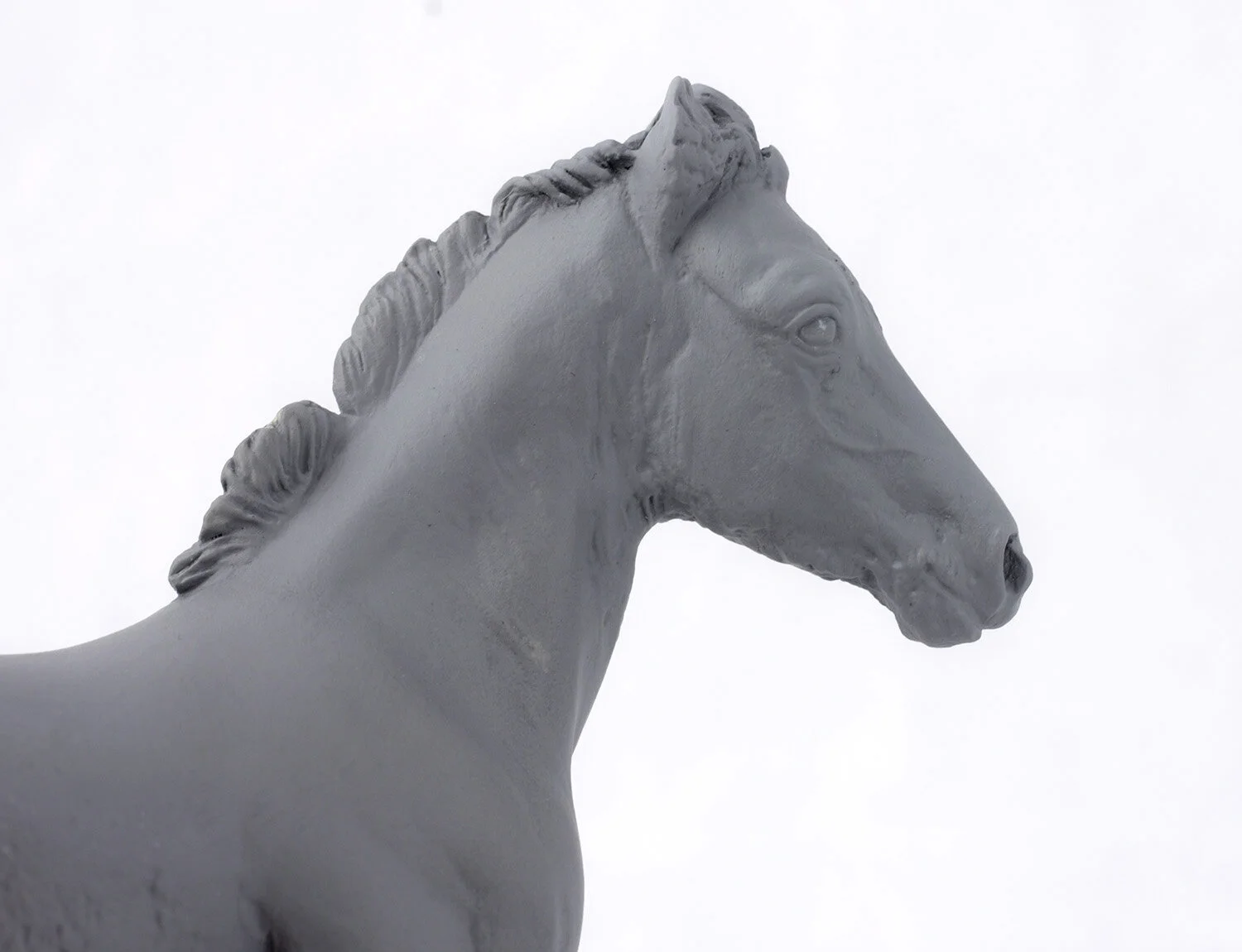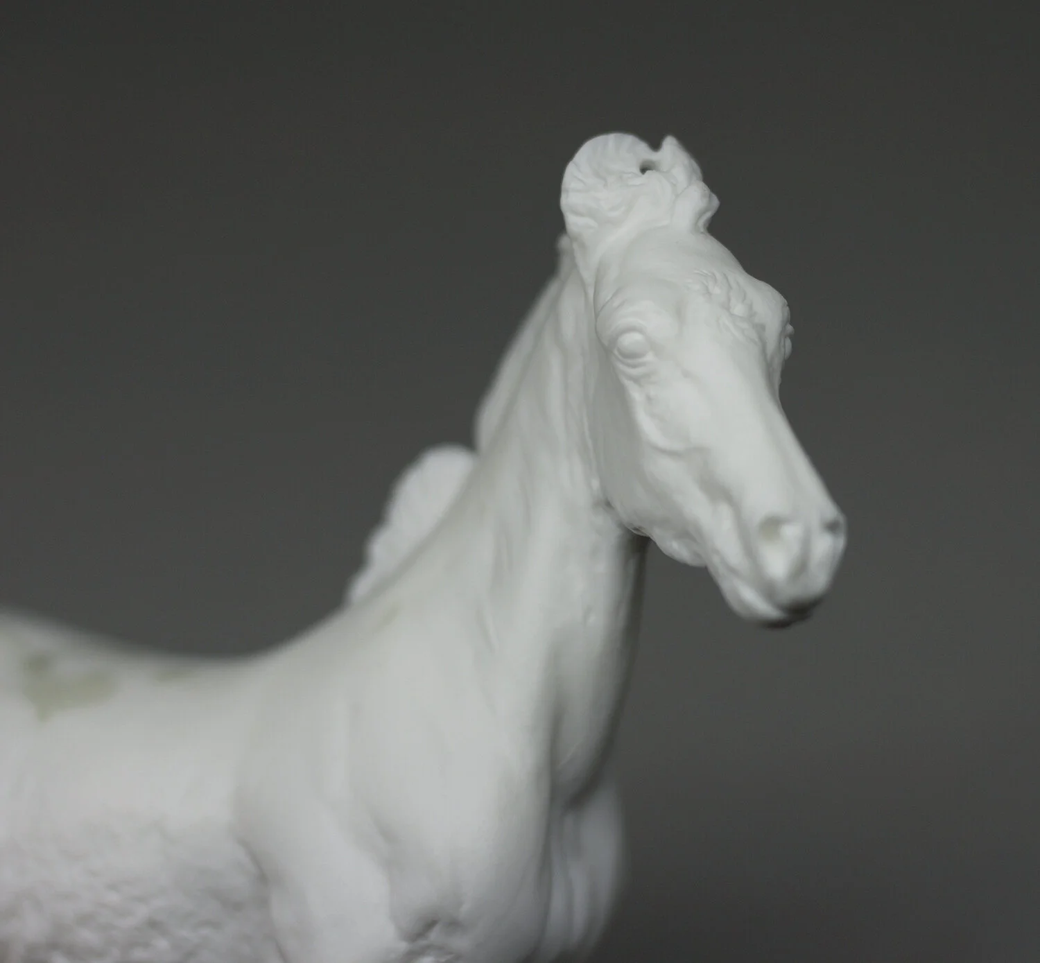 Nessa is a traditional scale Marwari filly, leggy and ready to bounce away. She has her breeds’ characteristic curly ears and baby fuzz too (ears will be dremelled clean when casts arrive, I’ve kept things closed there to hopefully simplify the mold making process.) She might be gangly now, but she’ll surely grow into a stunner when she’s older!